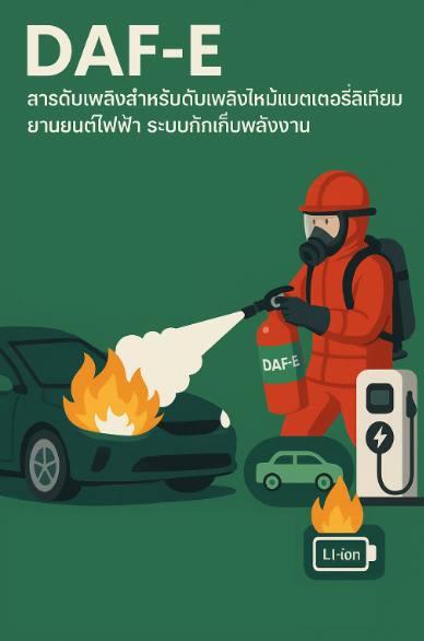 DAF-E สารดับเพลิงสำหรับดับเพลิงไหม้แบตเตอรีลิเทียม ยานยนต์ไฟฟ้า ระบบกักเก็บพลังงาน
